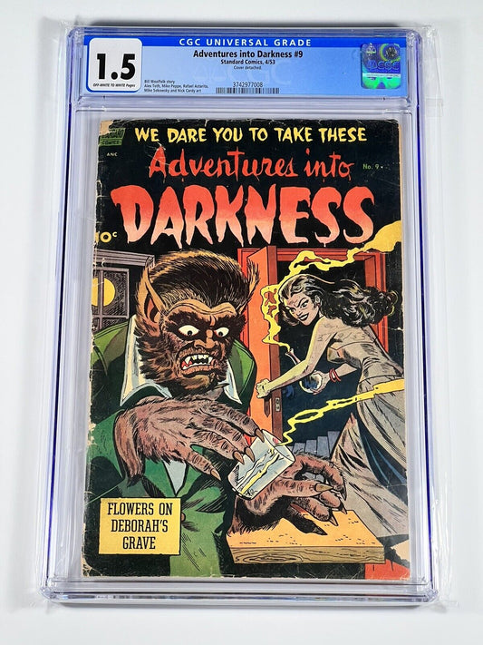 Adventures Into Darkness 9 CGC 1.5 OWW Pgs - Werewolf 1953 Standard Comics